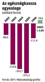 Egy negyedév alapján még nem lehet arra következtetni, hogy év végére eltűnik az egészségbiztosítási alap hiánya, netán többlete lesz - mondta lapunknak Sinkó Eszter közgazdász, rendszerelemző. Állítja: a megtakarítás egyik része abból adódik, hogy a kormány két oldalról is viszszafogta a szolgáltatások iránti keresletet. Egyfelől csökkentették az elszámolható gyógyítási feladatokat. Ebből 3 milliárd forintot nyertek. Mindennek "ára", hogy az intézmények vagy a saját szakállukra, ingyen végeztek kezelést, vagy elküldték a beteget, azaz későbbre halasztották a gyógyítását. Jelentkezett a reformintézkedések pénzvisszafogó hatása is.