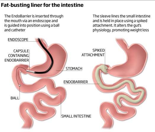 A lexingtoni GI Dynamics által kifejlesztett, EndoBarrier névre keresztelt eszköz az elhízás jelenlegi, sokszor drága és komolyabb beavatkozást igénylő sebészeti megoldásaira kínál alternatívát. Az orvosi gyakorlatban általánosan alkalmazott módszerek között szerepel a gyomorgyűrűs és a ballonos módszer, a bypass műtét, a zsírleszívás, illetve a plasztikai módszerek: Magyarországon ezek közül egyedül a bypass műtét nem elérhető, a többi eljárás viszont a hazai betegek számára is hozzáférhető (ezekről részletesen lásd cikkünk második oldalát). A műtéti eljárások komoly hátránya, hogy bár jelentős és később is fenntartható súlycsökkenést lehet elérni a segítségükkel, sokszor igen drágák és fokozott egészségügyi kockázatot jelentenek a betegek egy részére: ezek közé tartozik a halálos kimenetelű operáció is, így a túlsúlyos páciensek közül sokan eleve nem is vállalkoznak rá, hogy a sebészkés alá feküdjenek. Egy amerikai sebésztársaság, az American Society for Metabolic and Bariatric Surgery felmérése szerint az USA-ban nagyjából 220 000 túlsúlyos személy esett át gyomorszűkítő műtéten 2008-ban.